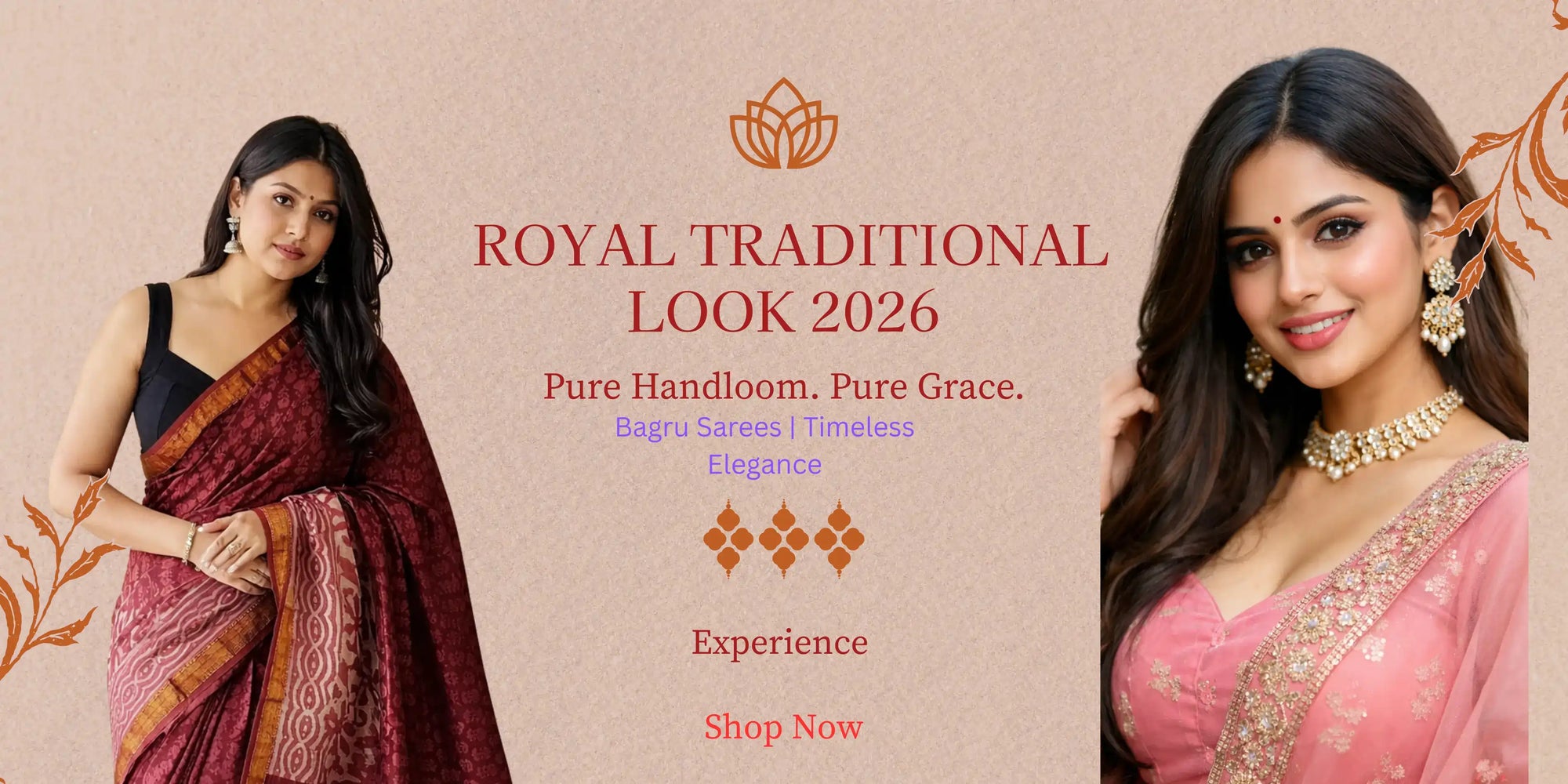 Handcrafted Bagru Hand Block Printed Kota Saree